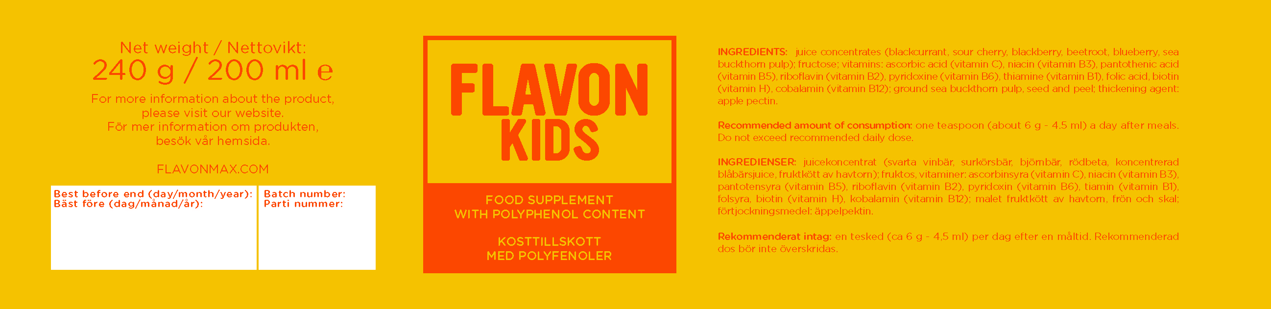 Detailed information about the nutritional values of Flavon Kids can be found on the package of the product, as well as under the Ingredients menu.